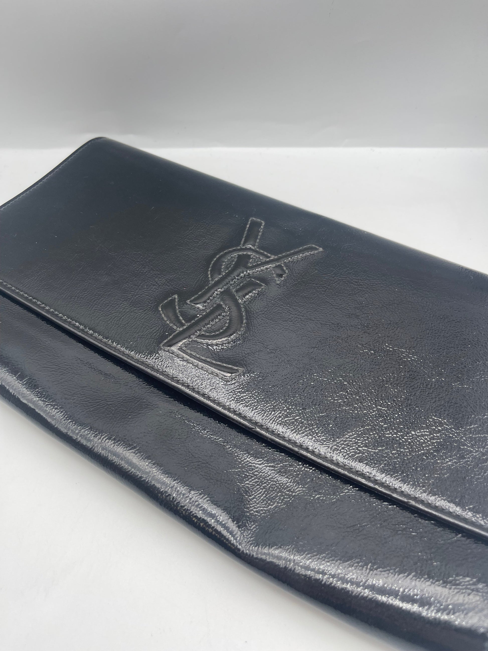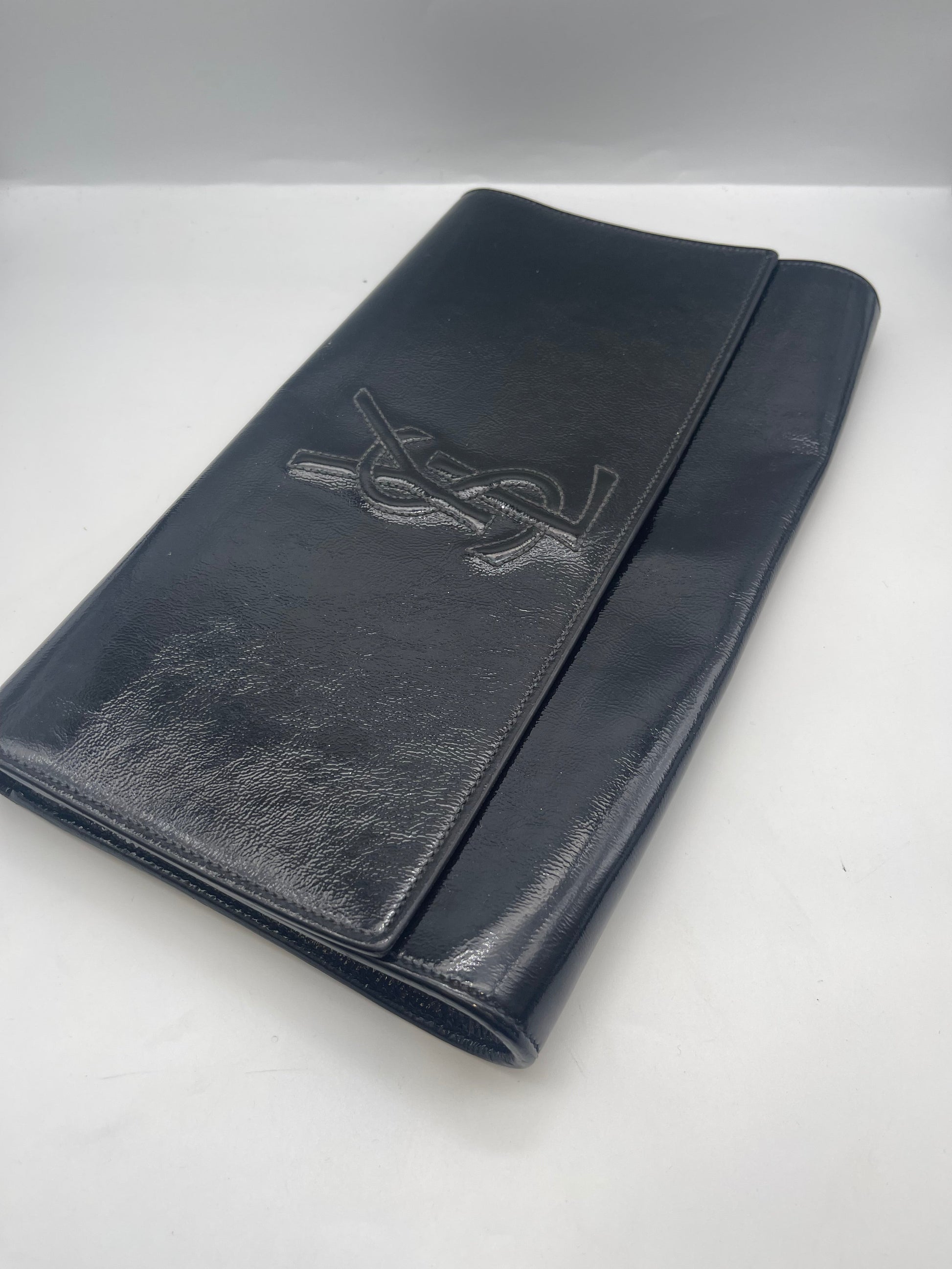 This lovely Belle Du Jour clutch is crafted of rich patent leather with a classic quilted YSL logo on the flap in black. This opens to a black satin fabric lining. This is a Timeless clutch that is suitable for day and evening, only from Saint Laurent.