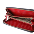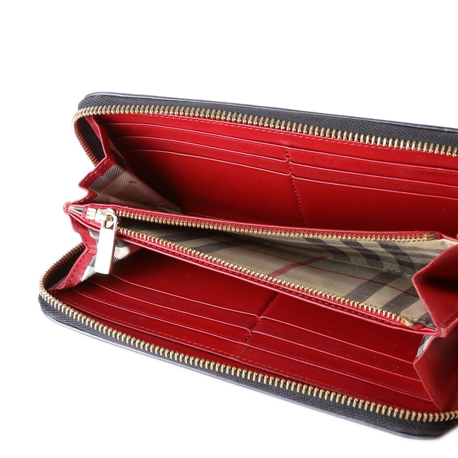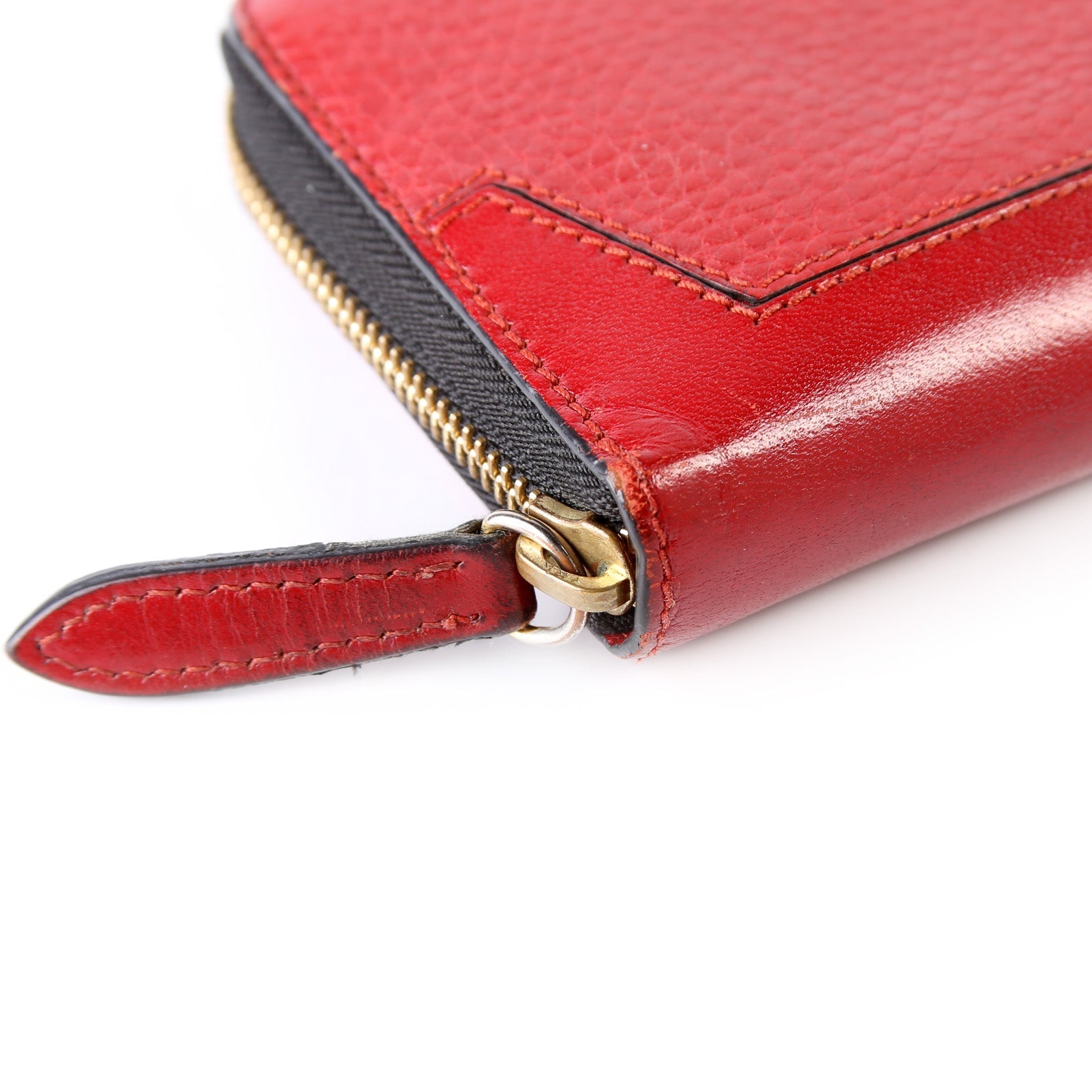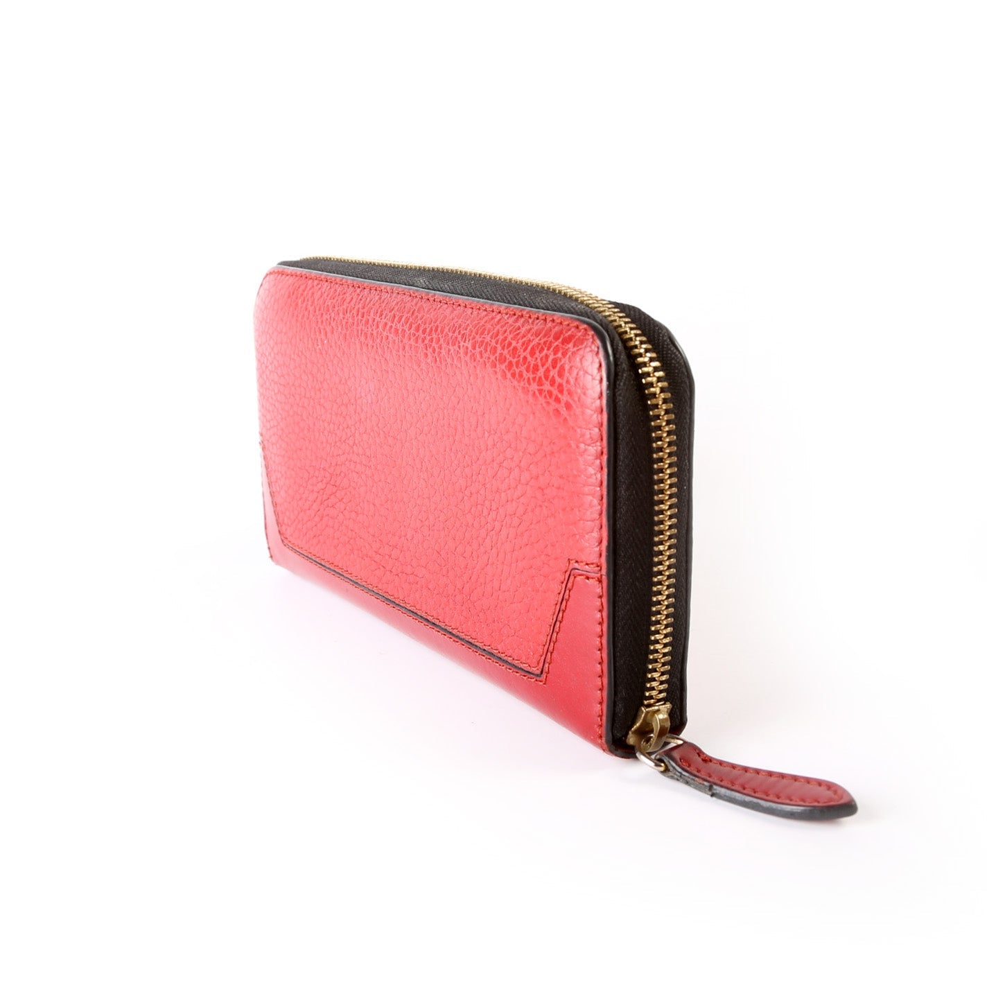 Interior: The interior shows minor wear and discoloration throughout. The interior features one zipper pocket, two bill slots and twelve card slots.