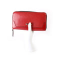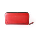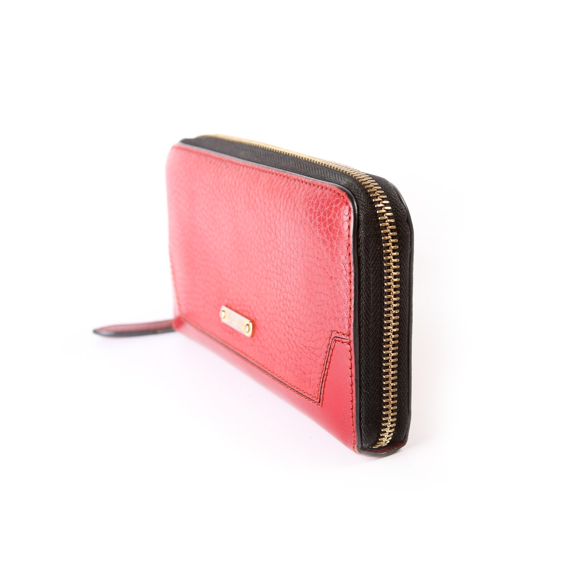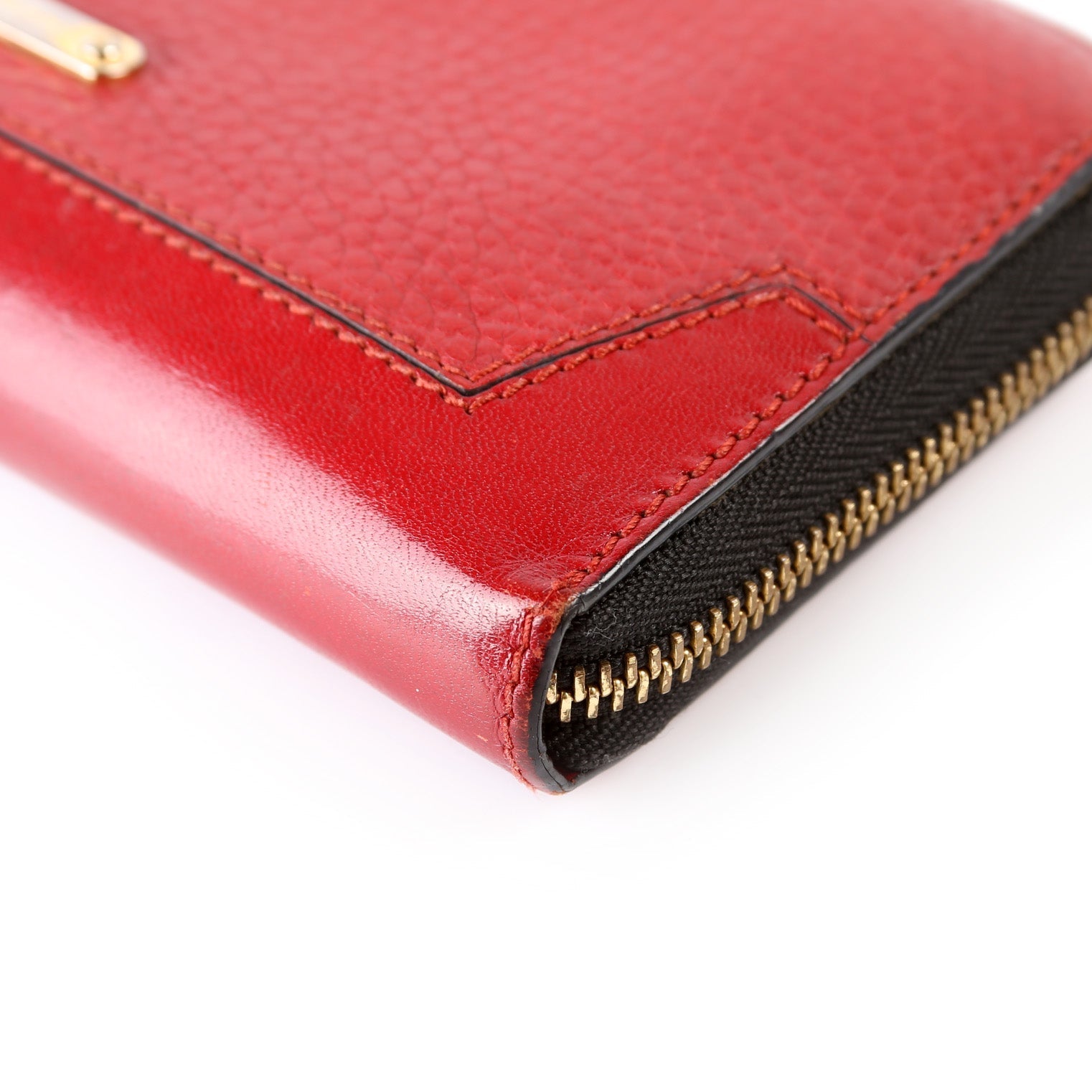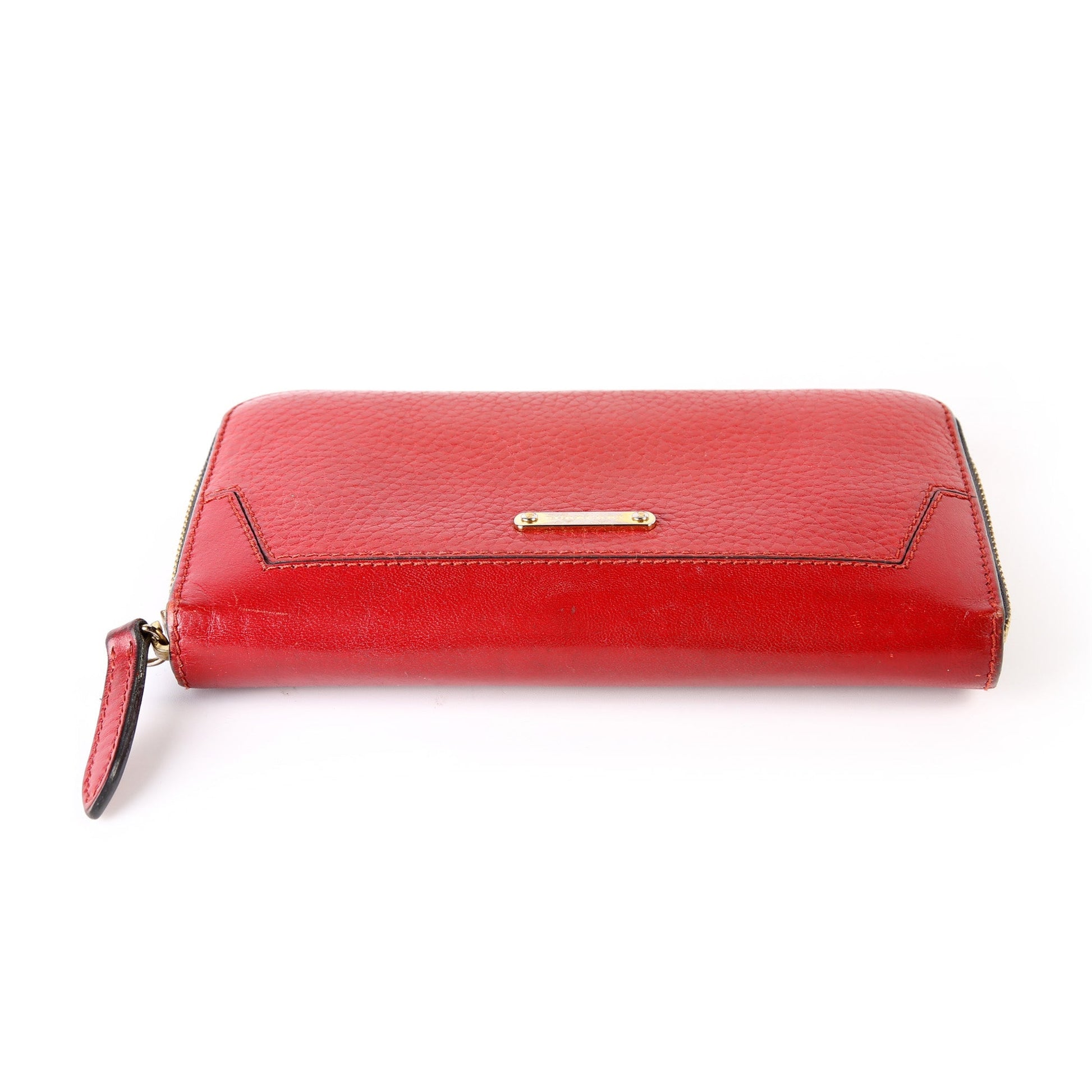 Interior: The interior shows minor wear and discoloration throughout. The interior features one zipper pocket, two bill slots and twelve card slots.