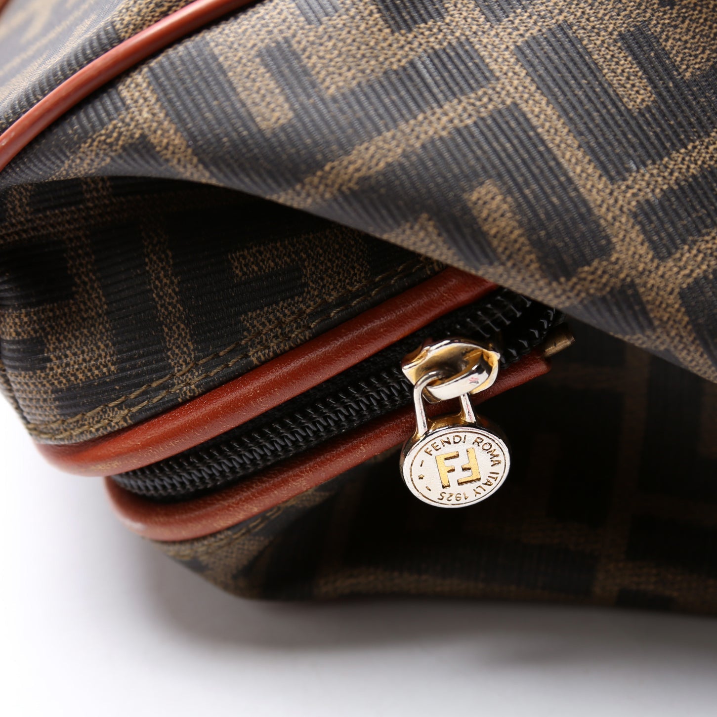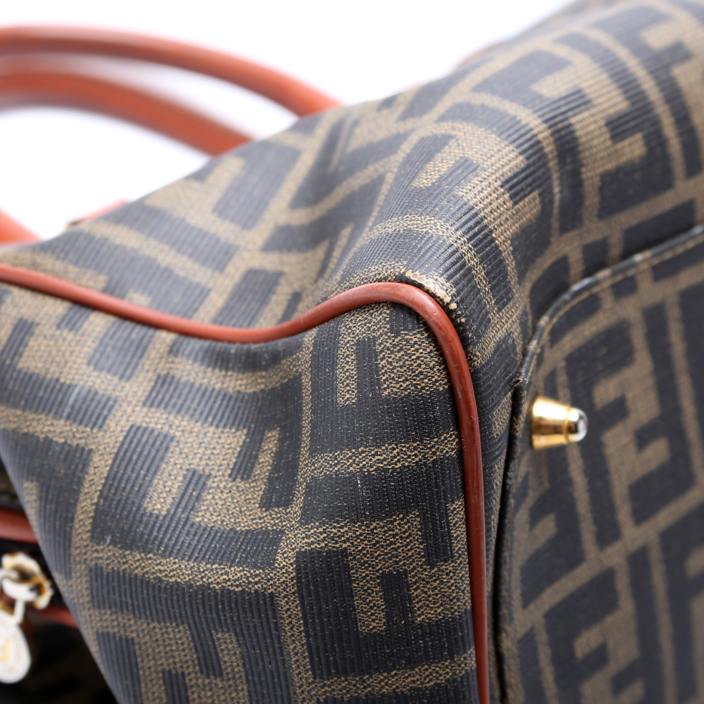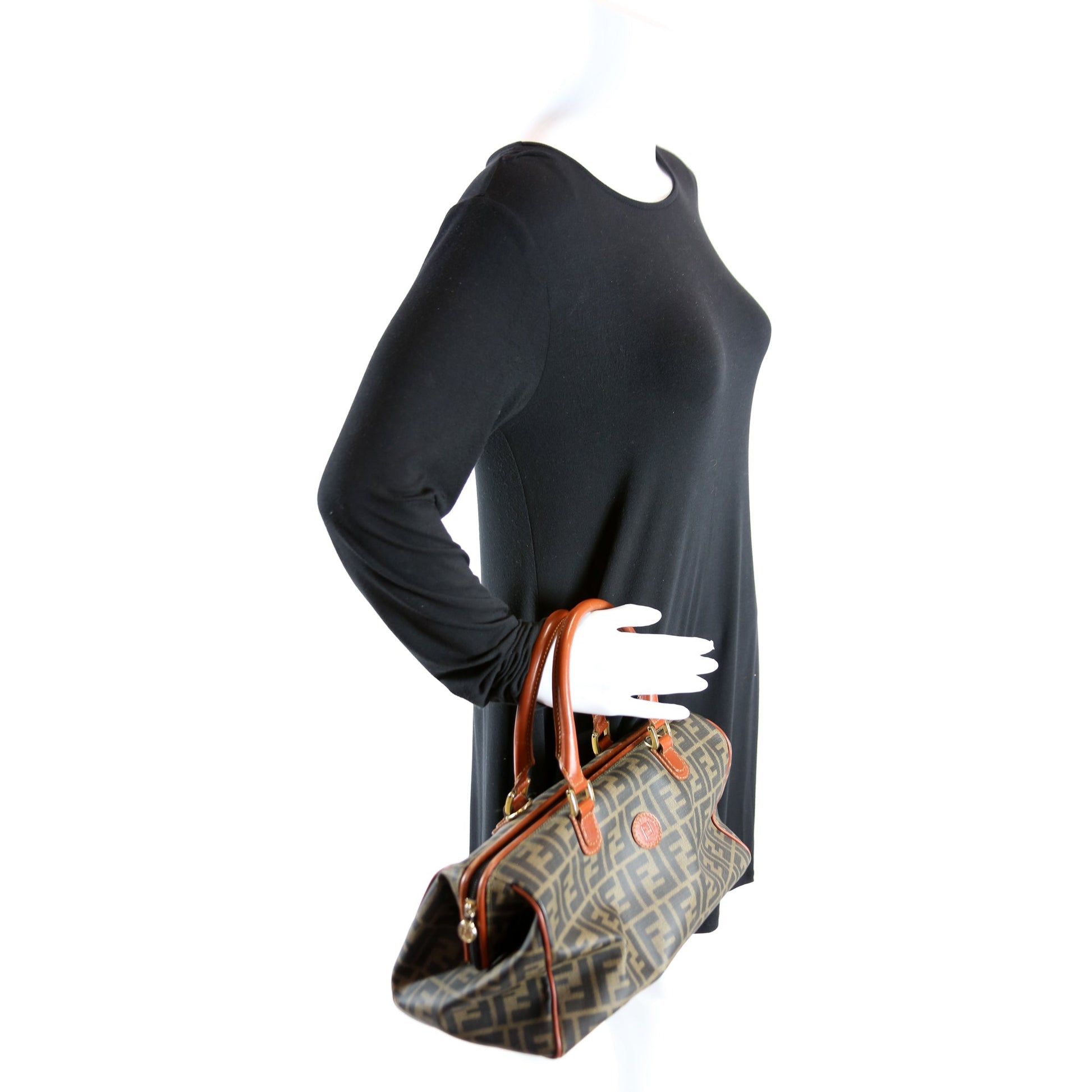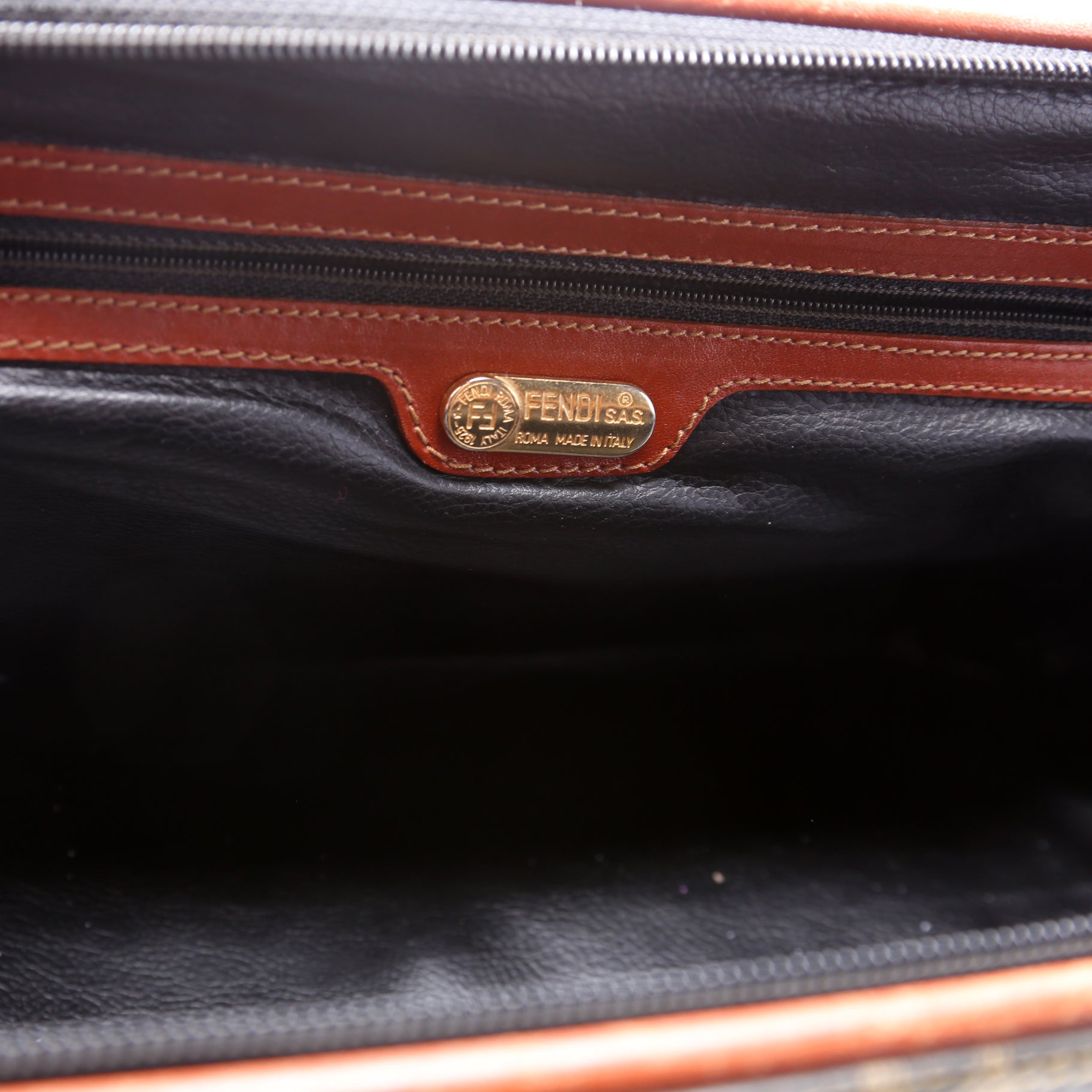 This Fendi Vintage Boston Bagis eye catching bag. The exterior is in the classic Fendi Zucca coated canvas.