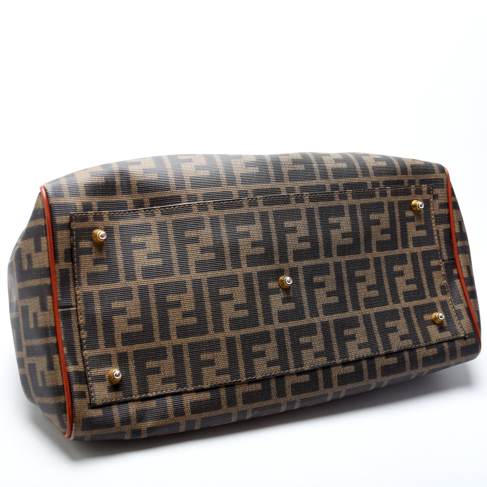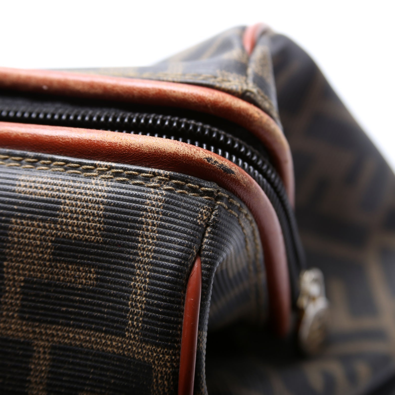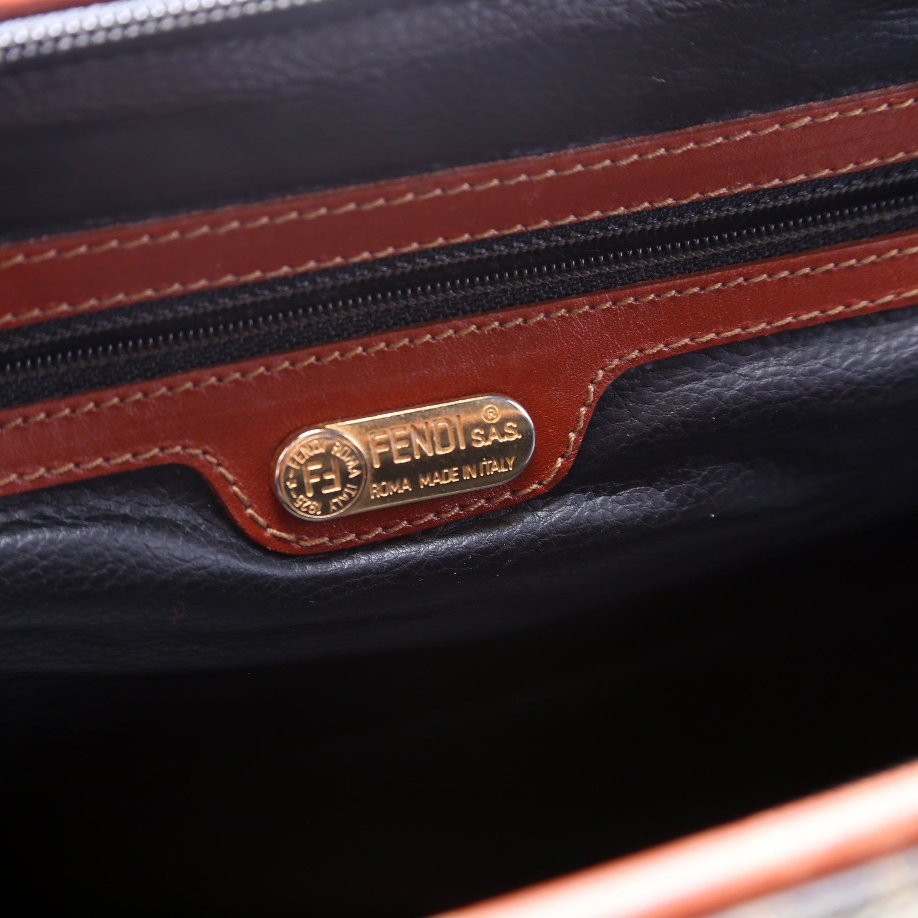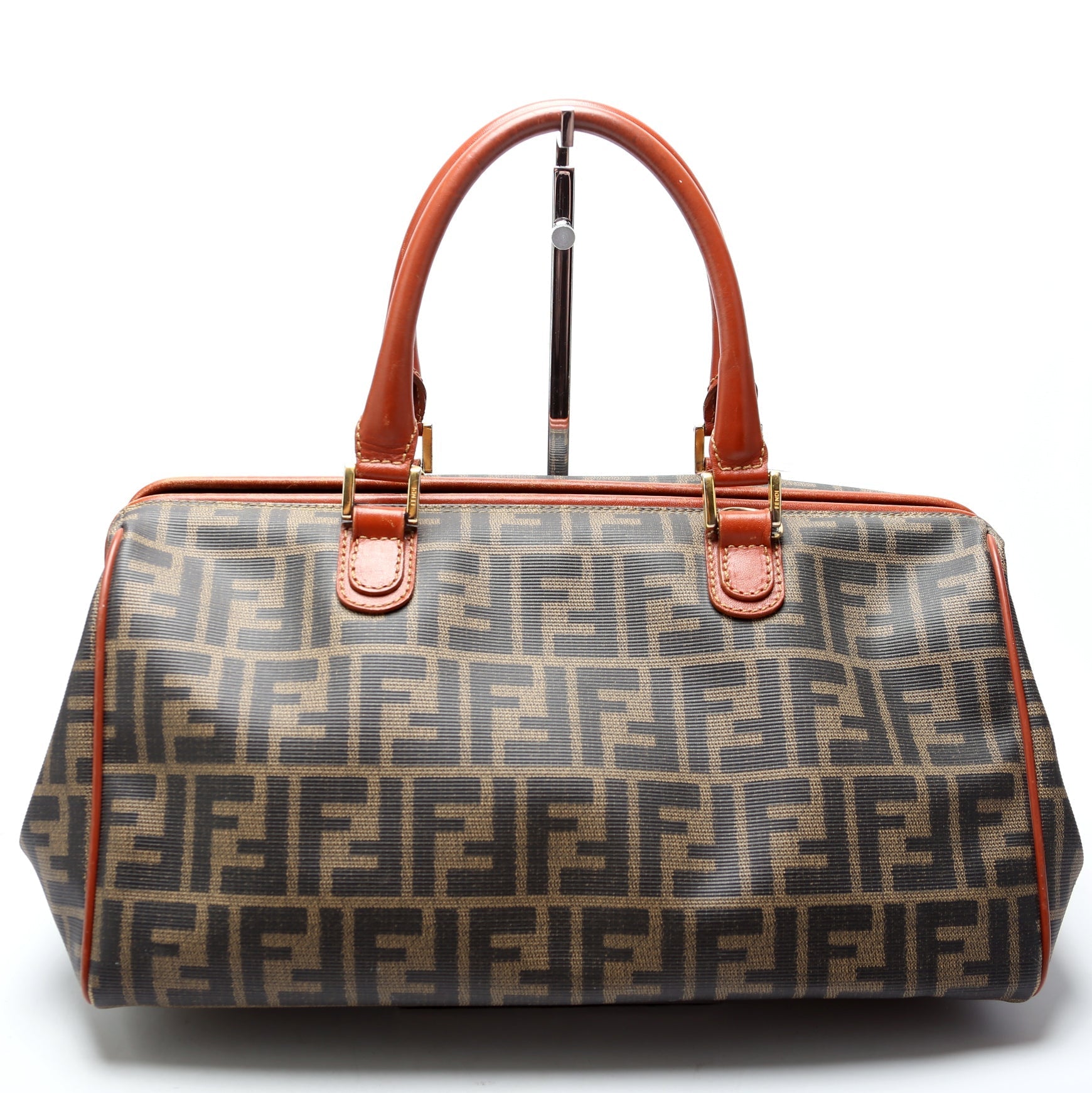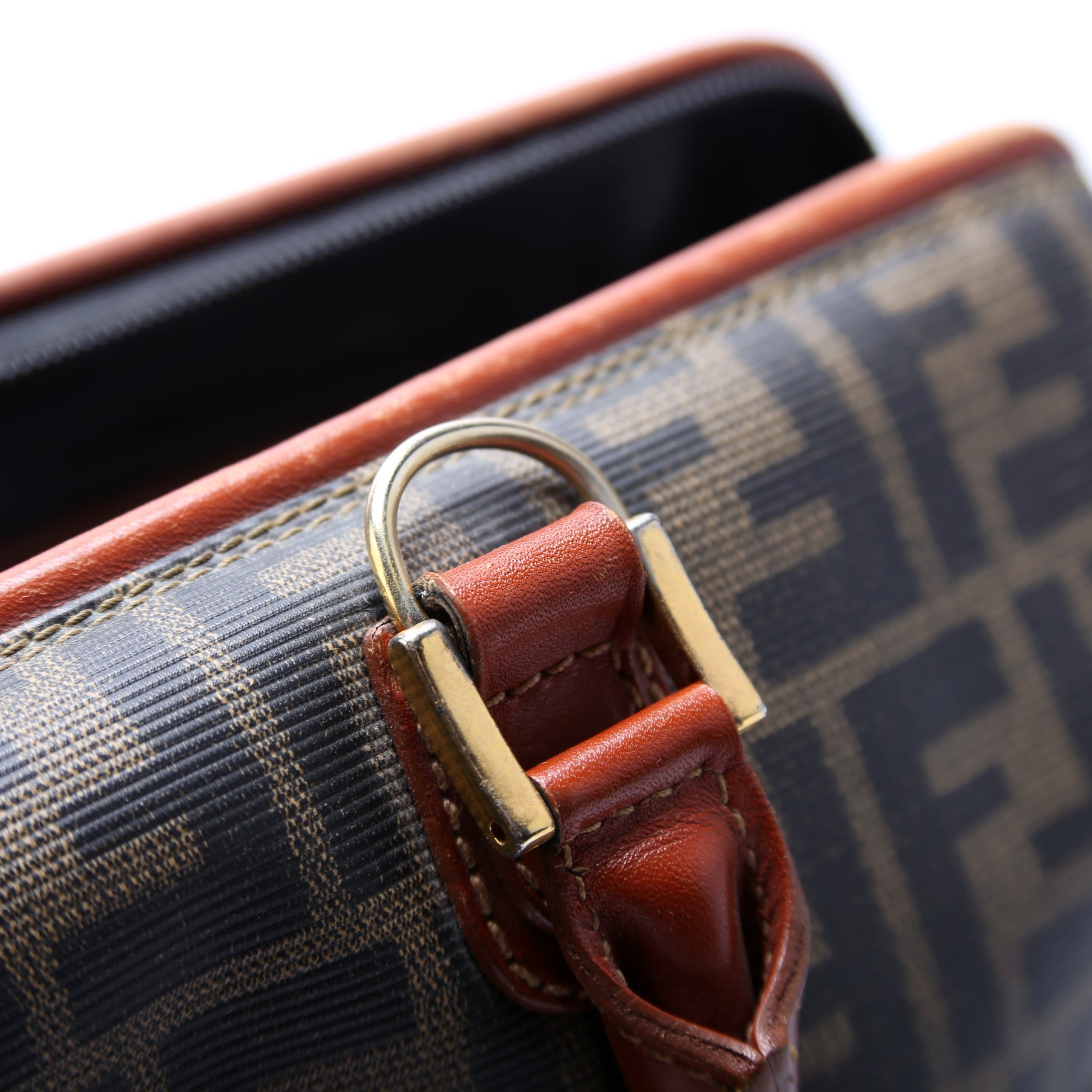 This Fendi Vintage Boston Bagis eye catching bag. The exterior is in the classic Fendi Zucca coated canvas.